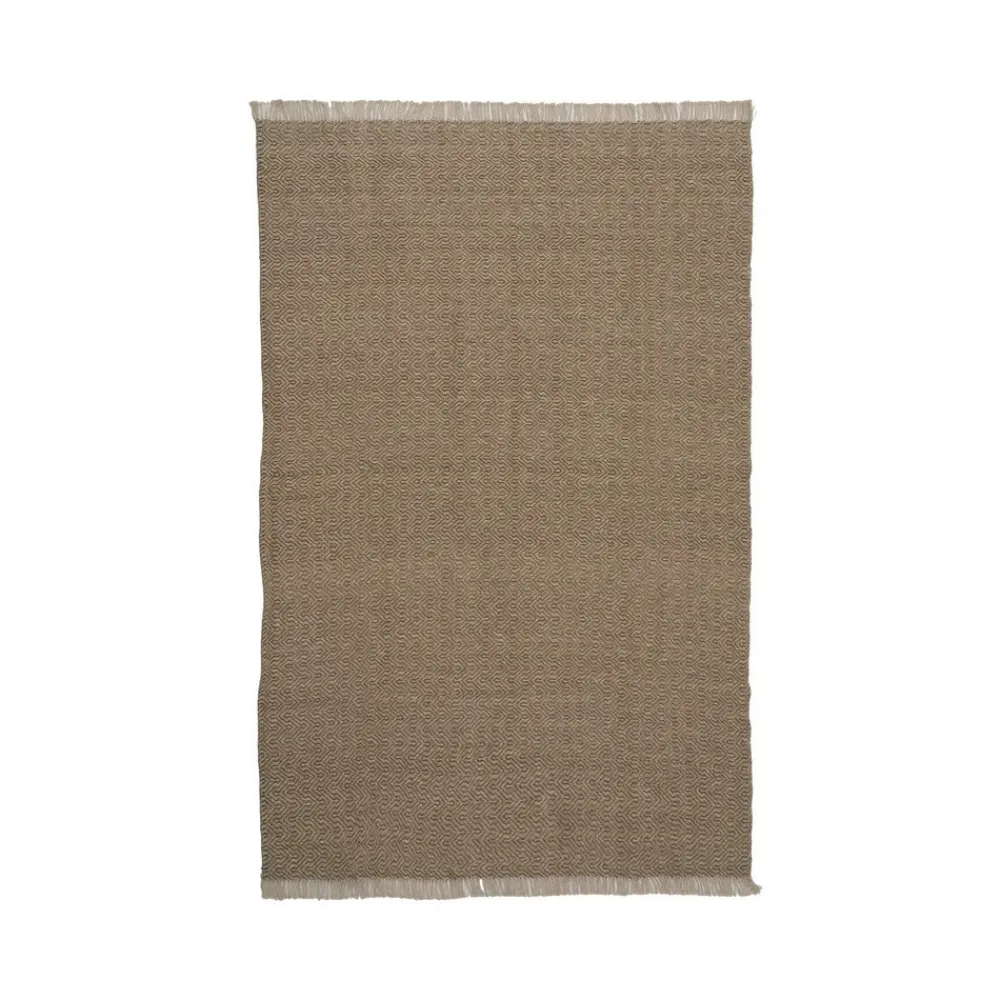 Material: 80% Lana 20% Algodón. Instrucciones de mantenimiento: Aspirar la alfombra regularmente en potencia baja, sin cepillo fijo o giratorio. Limpiar los derrames de líquido lo antes posible, utilizando un cepillo de cerdas suaves y agua con jabón neutro, sin abrasivos, e x isten kits de limpieza especiales para alfombras. No exponerdirectamente al sol. No lavar en la lavadora, siempre debe ser lavada por profesionales. Girar la alfombra de vez en cuando para favorecer un desgaste uniforme. Para almacenar la alfombra, se debe enrollar con la cara hacia fuera, quedando así la superficie de la alfombra encarada al exterior.