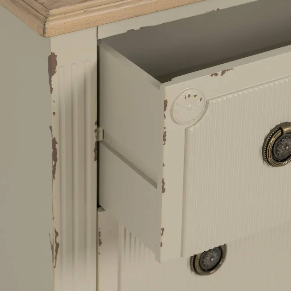IXIA C贸modas^Cómoda De Madera Abeto Vintage 3 Cajones Crema 80 X 73 X 38 Cm