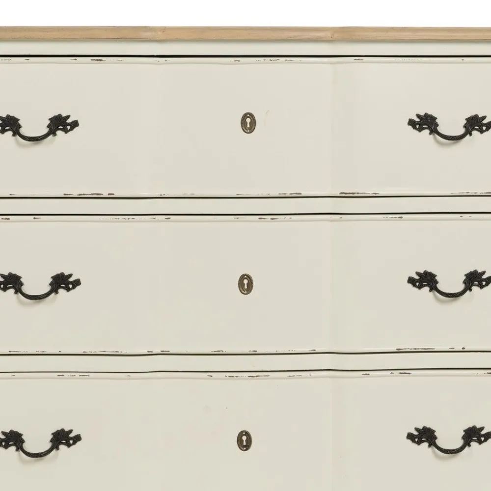 IXIA C贸modas^Cómoda De Madera De Abeto Vintage Crema – Natural 3 Cajones 100 X 80 X 45 Cm