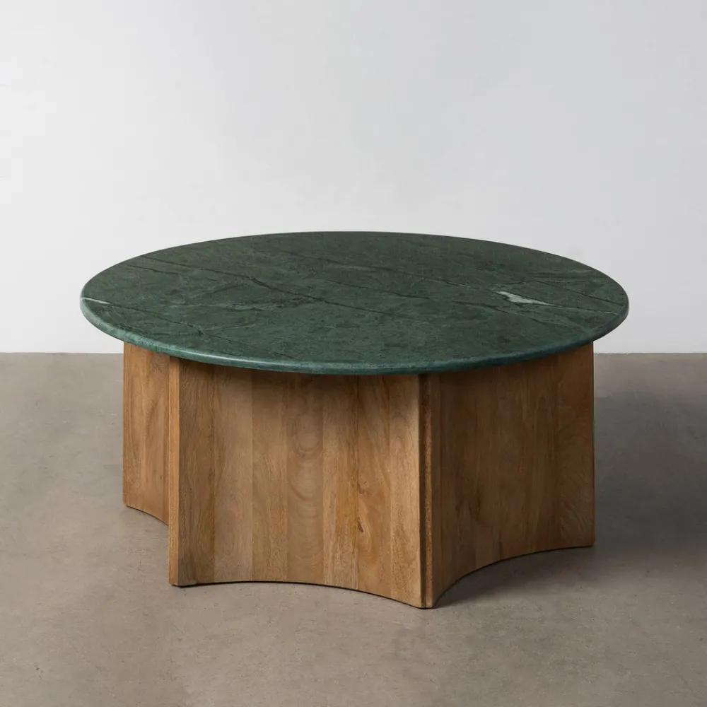 IXIA Mesas Auxiliares^MESA CENTRO NATURAL-VERDE MADERA-MÁRMOL 97 X 97 X 41 CM
