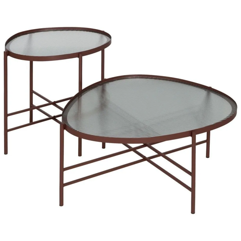 Con su superficie de vidrio estriado, esta mesa ofrece un diseño texturizado que añade profundidad y estilo a cualquier sala de estar. Las patas de hierro, en un refinado acabado marrón metalizado, proporcionan estabilidad y resistencia, asegurando que la mesa se mantenga firme en cualquier tipo de suelo.