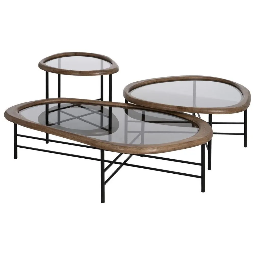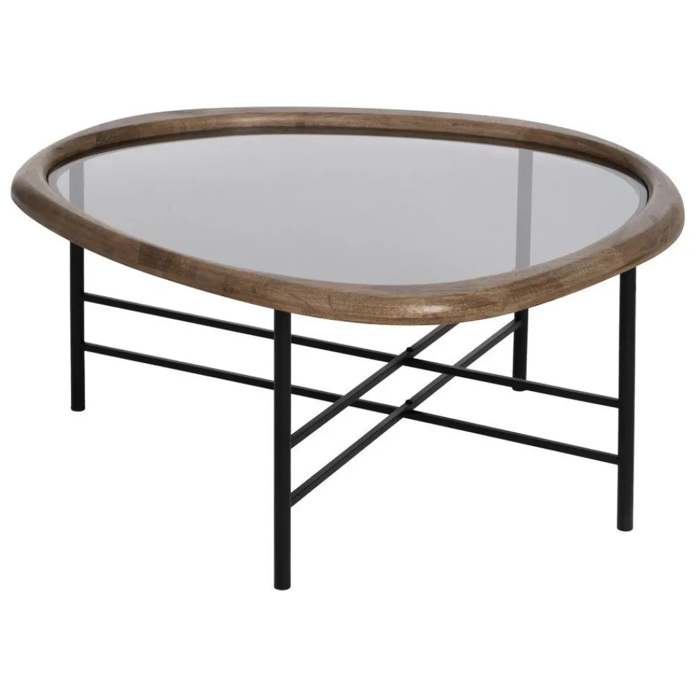 IXIA Mesas Auxiliares^Mesa De Centro Irregular De Cristal Natural – Negro 76 X 38 X 81 Cm