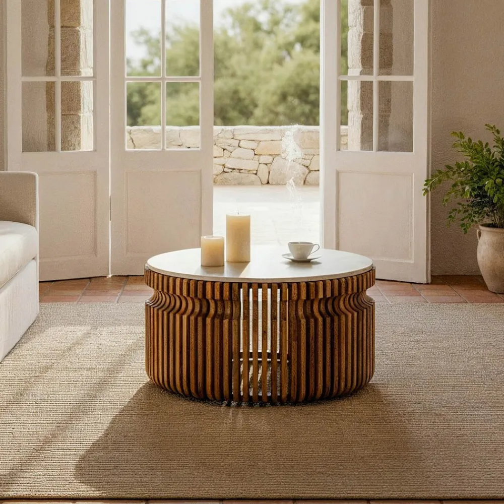 IXIA Mesas Auxiliares^Mesa De Centro Mármol Natural – Blanco 80 X 42 X 80 Cm