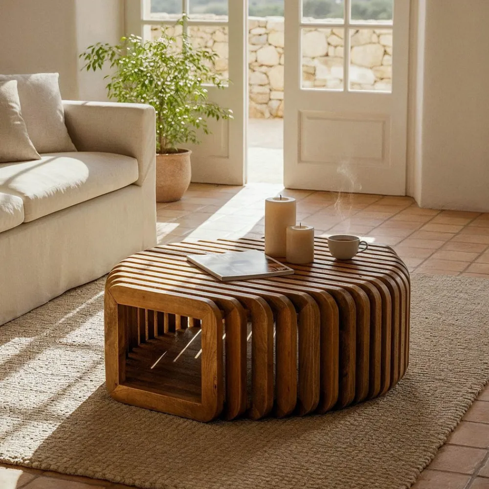 IXIA Mesas Auxiliares^Mesa De Centro Ovalada Madera De Mango Natural 84 X 32 X85 Cm