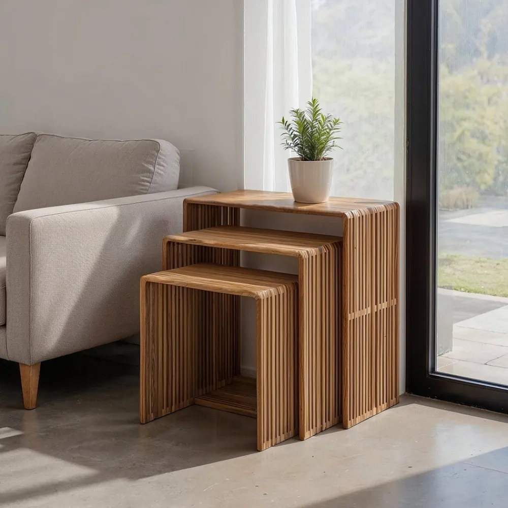 IXIA Mesas Auxiliares^Set 3 Mesas Auxiliares De Madera De Teca Bellamonte Natural 65 – 55 – 45 X 66 – 56 – 46 X 30 Cm