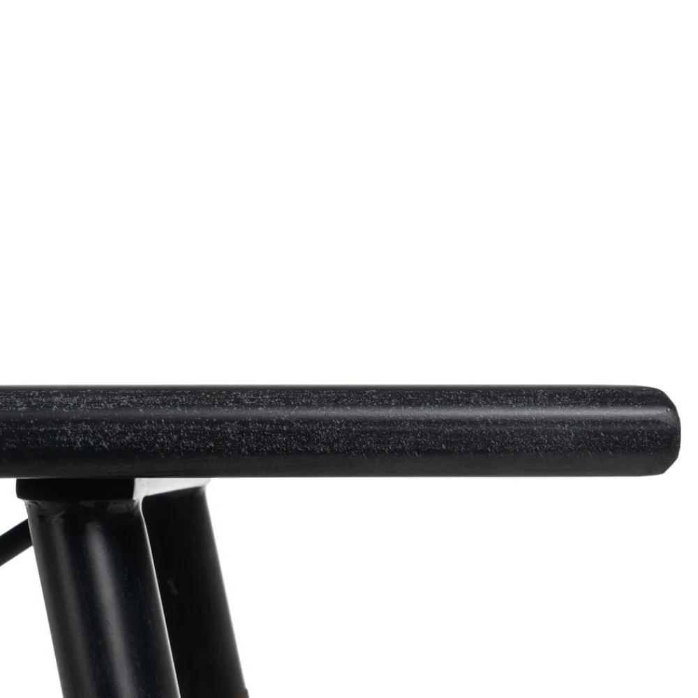 Fabricada en , esta consola destaca por su resistencia y estética. La madera de xylosma aporta vetas cálidas y textura natural, mientras que el metal negro refuerza la estructura con un aire industrial. Las patas inclinadas con travesaños metálicos garantizan estabilidad y diseño.