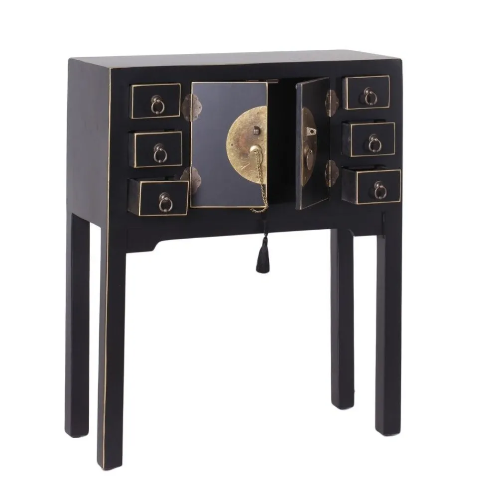 IXIA Mesas Consola^Consola Recibidor Oriente Negro 2 Puertas 6 Cajones 63 X 80 X 26 Cm