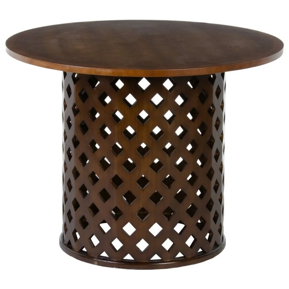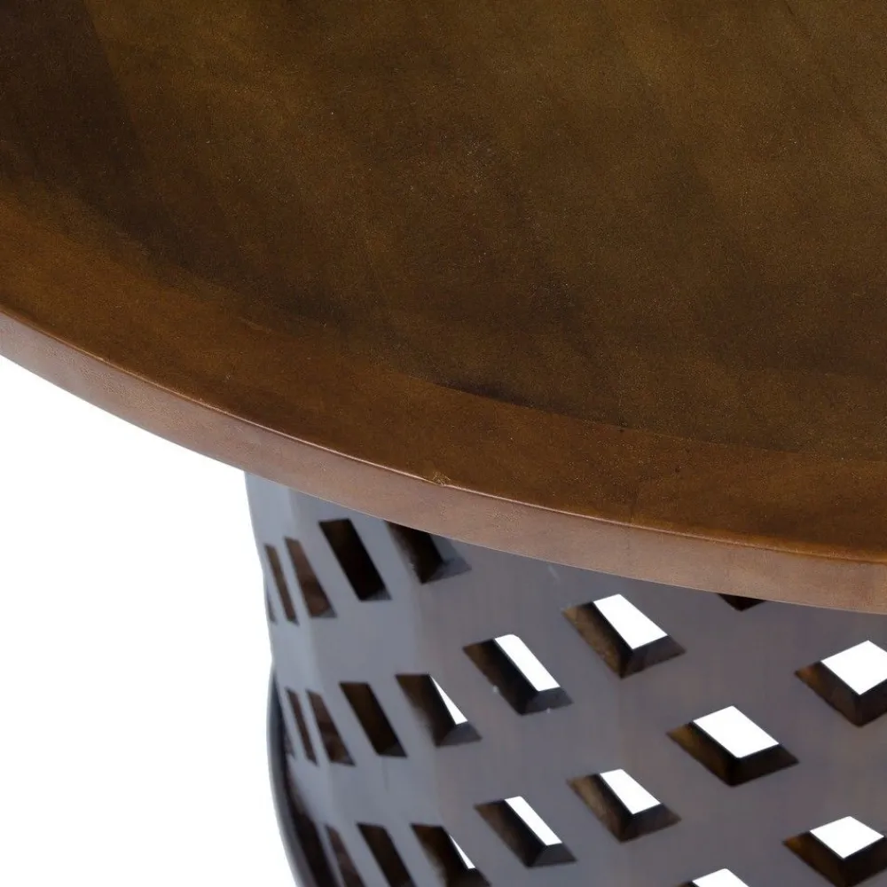 La es una pieza única que destaca por su diseño artesanal y su funcionalidad. Fabricada en , esta mesa ofrece un acabado cálido y natural que realza cualquier espacio. Su base cilíndrica, con un patrón decorativo, la convierte en un elemento distintivo que aporta un toque de exclusividad a tu comedor.