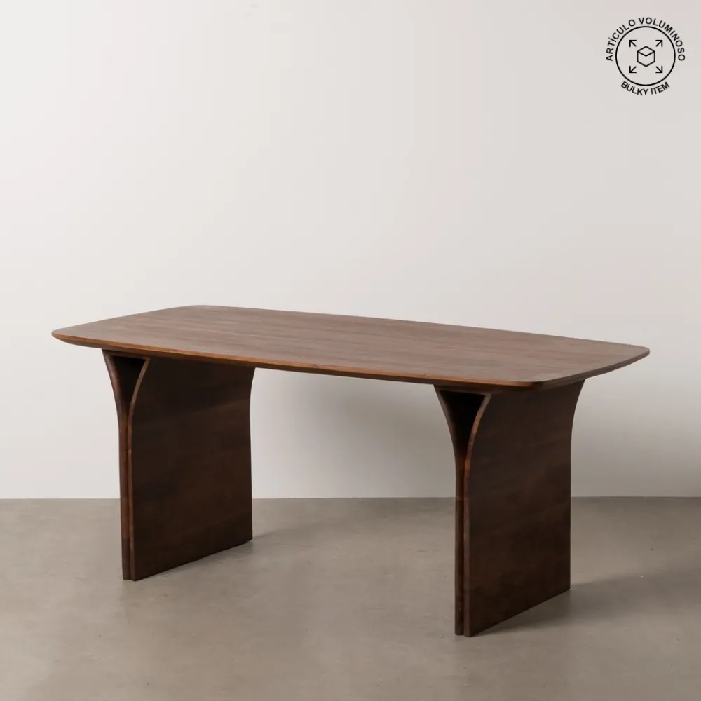 Con una estructura robusta y un acabado natural en color marrón, esta tiene capacidad para . Su forma rectangular, con unas dimensiones de , la convierte en una opción versátil para espacios grandes y medianos. Además, la distancia entre patas, de 114 cm, proporciona una mayor comodidad para los asientos.