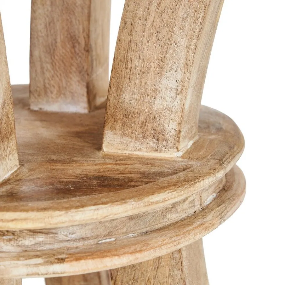 La mesa redonda de comedor en madera blanco rozado combina un diseño clásico con acabados naturales que resaltan la belleza de la madera de mango. Ideal para comedores acogedores, su estructura redonda favorece la interacción entre comensales, optimizando el espacio disponible.