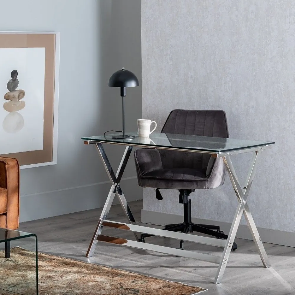 IXIA Mesas De Estudio Y Escritorios Baratos^Mesa De Escritorio De Cristal Transparente 110 X 76 X 55 Cm