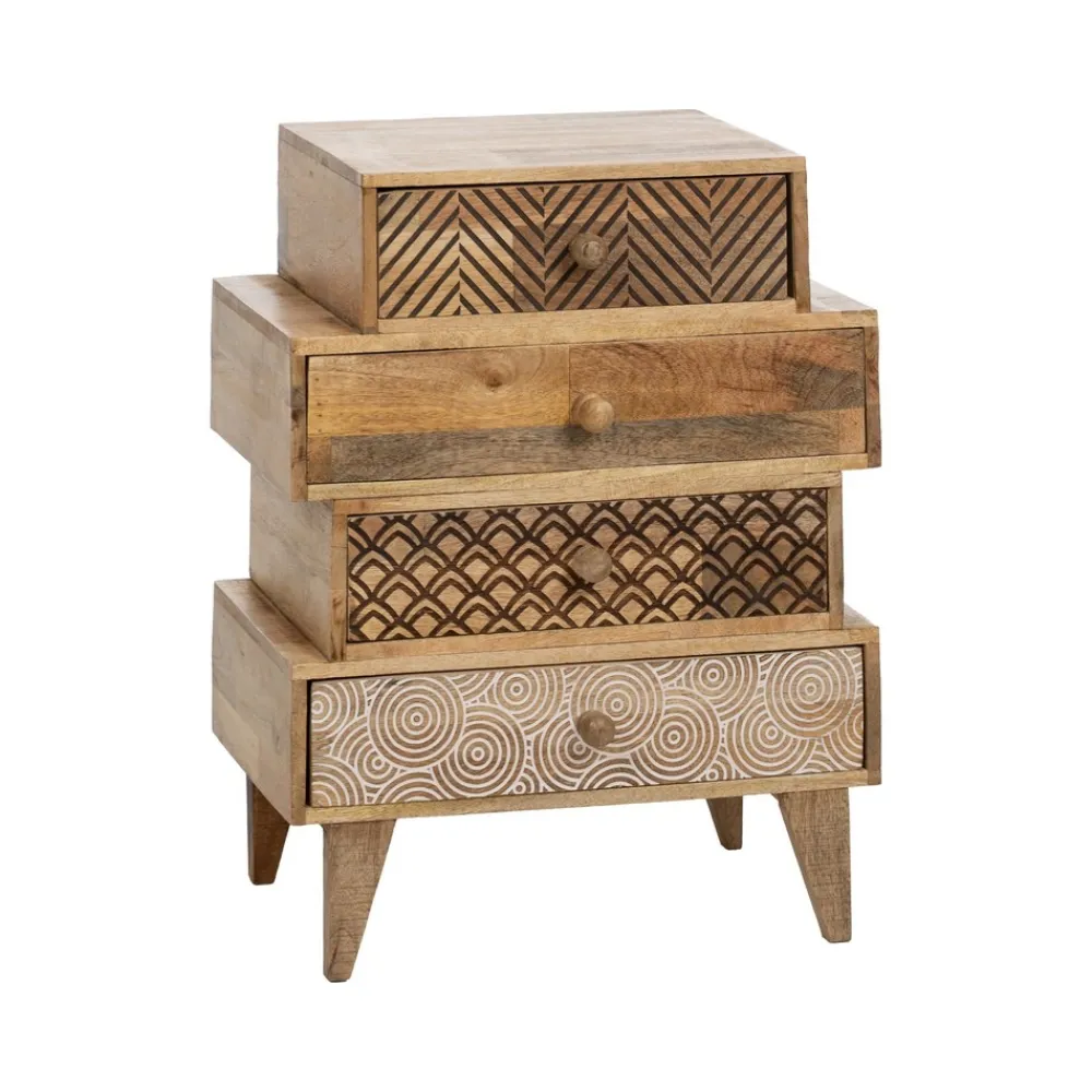 IXIA Mesillas De Noche^Mesilla De Madera De Mango 4 Cajones Natura 46 X 60 X 30 Cm