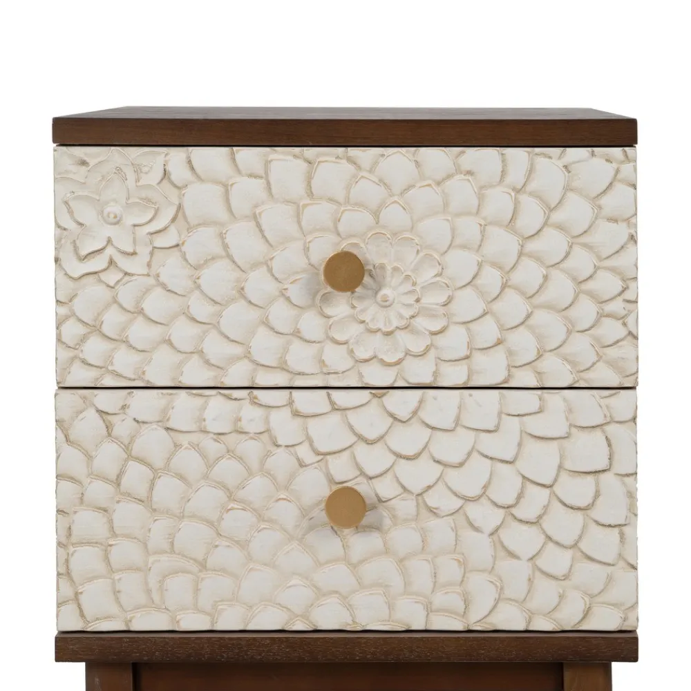 IXIA Mesillas De Noche^Mesita De Noche 2 Cajones Manacor De Madera Tallada 48 X 60 X 36 Cm