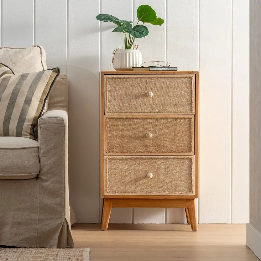 IXIA Mesillas De Noche^Mesita De Noche De Madera 3 Cajones Gerel Color Natural 46 X 76 X 37 Cm
