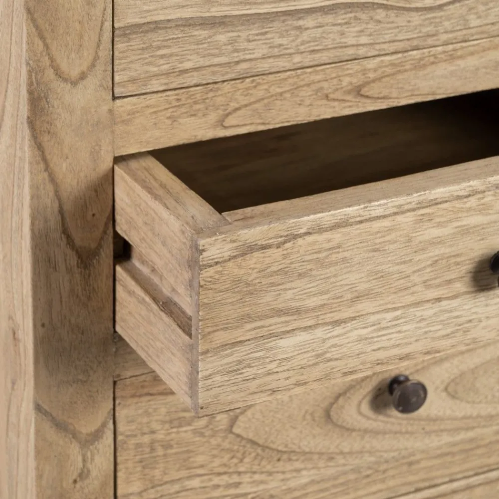 MESITA NATURAL Madera de Mindi DORMITORIO 44 X 34 X 77 cm Material: Madera de mindi. Medida cajones: 35,3×9 cm. Altura patas: 11 cm.