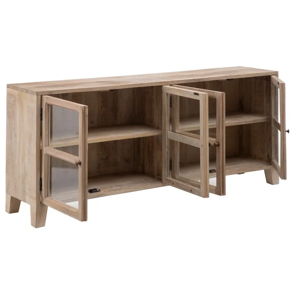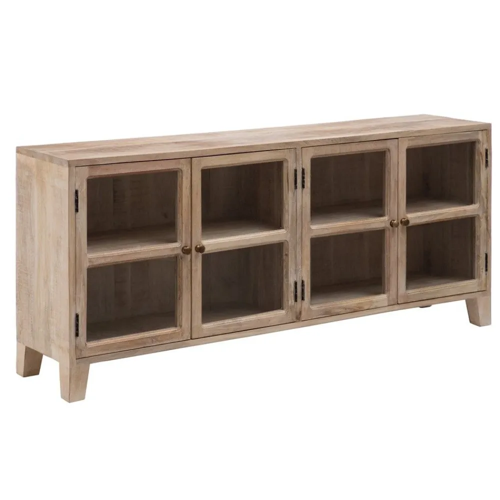 APARADOR BLANCO ROZADO Madera DE MANGO 160 X 35 X 71 cm Material: Madera de mango, cristal. Medida de las puertas: 38×56,5 cm. Altura de las patas: 10 cm. Incluye balda interior. Peso máximo soportado: 25 kg.