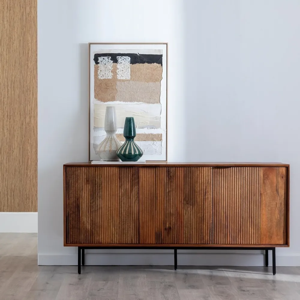 APARADOR MADERA DE MANGO SALÓN 160 X 40 X 78 CM Material: madera de mango, hierro. Puertas: 52,5x55cm. Altura patas: 18cm.