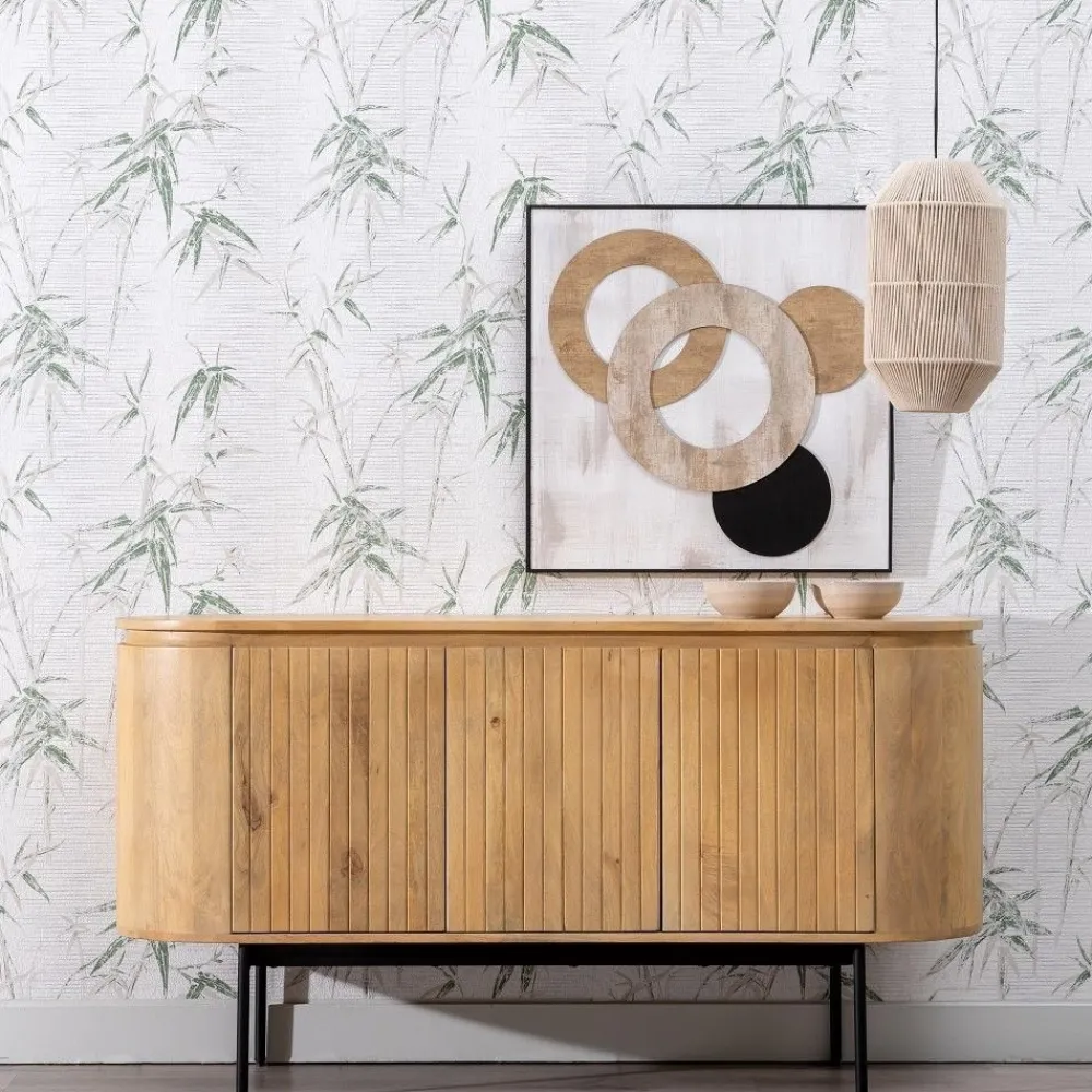 Sus dimensiones de lo convierten en una opción ideal para quienes buscan capacidad y diseño. Incorpora (33×44 cm) con un amplio espacio interior para guardar vajilla, textiles o documentos. Las patas de , fabricadas en hierro, aseguran estabilidad y elevan visualmente el aparador, facilitando además la limpieza bajo el mueble.