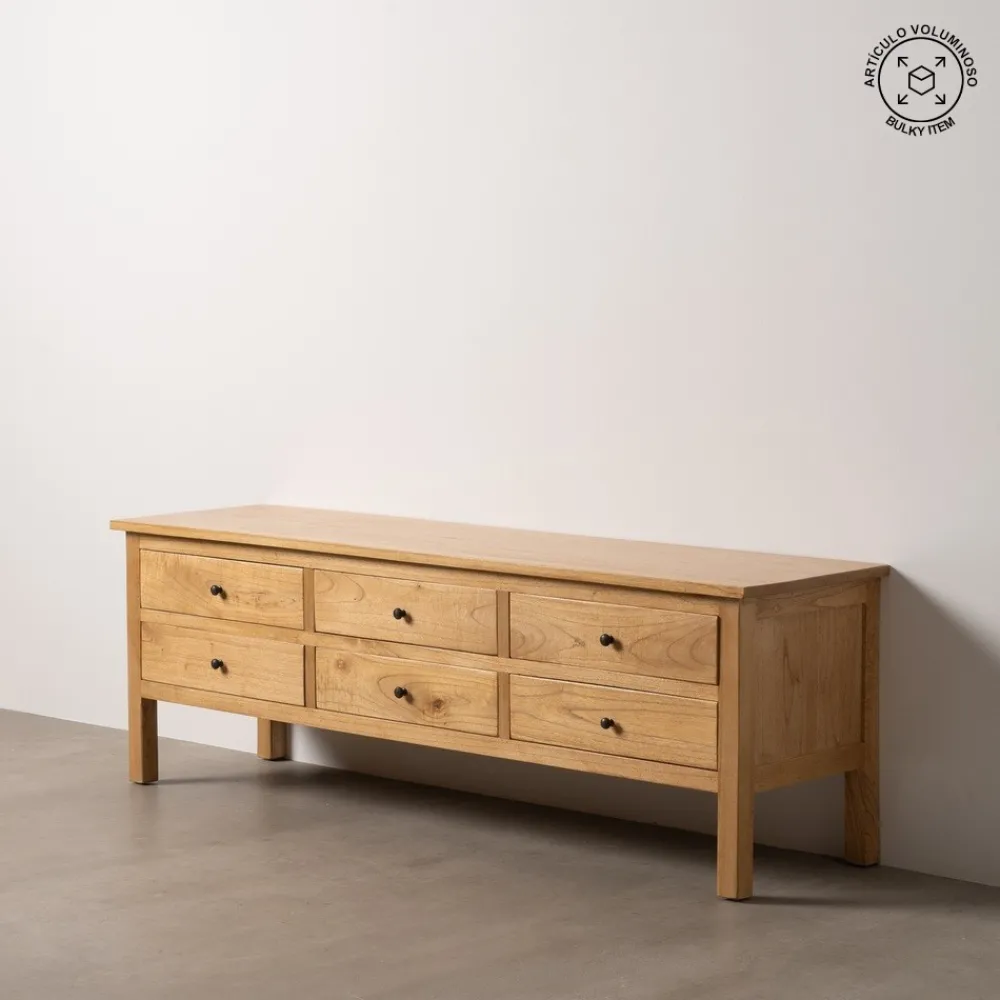 APARADOR NATURAL MADERA MINDI SALÓN 180 X 48 X 60 CM Material: madera de mindi. Cajones: 53×13,5cm. Altura patas: 20cm.