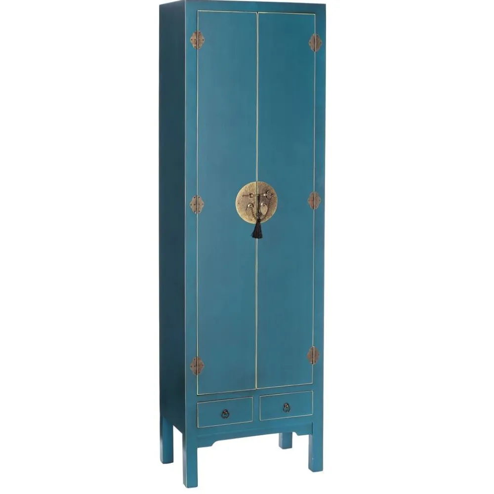 Mueble para salón, armario de estilo oriental Azul, con dos cajones y dos puertas, aporta un toque diferente a tu hogar. Acabado en color Azul con tiradores en color dorado envejecido.