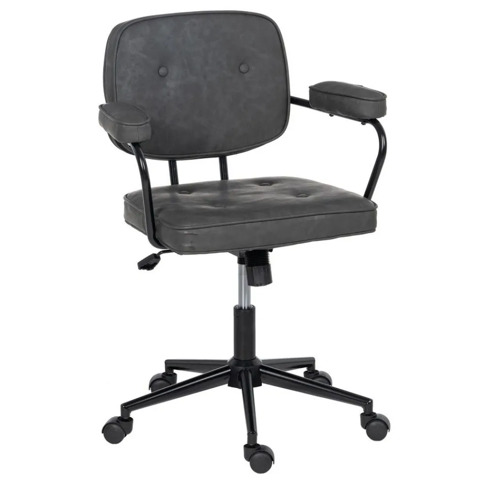 IXIA Sillas De Estudio^Silla Estudio Vintage Con Ruedas Símil Piel Negra 56 X 56 X 92 Cm