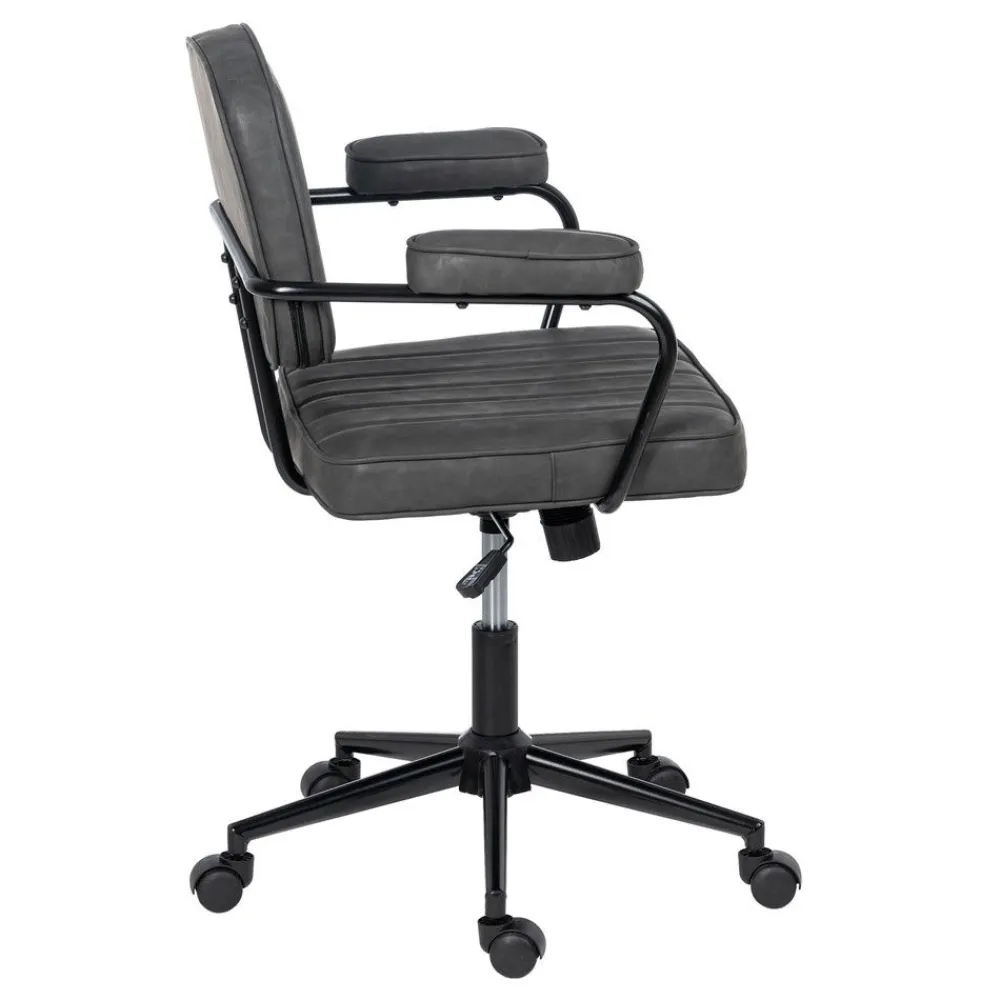 IXIA Sillas De Estudio^Silla Estudio Vintage Con Ruedas Símil Piel Rayada Negra 56 X 56 X 92 Cm