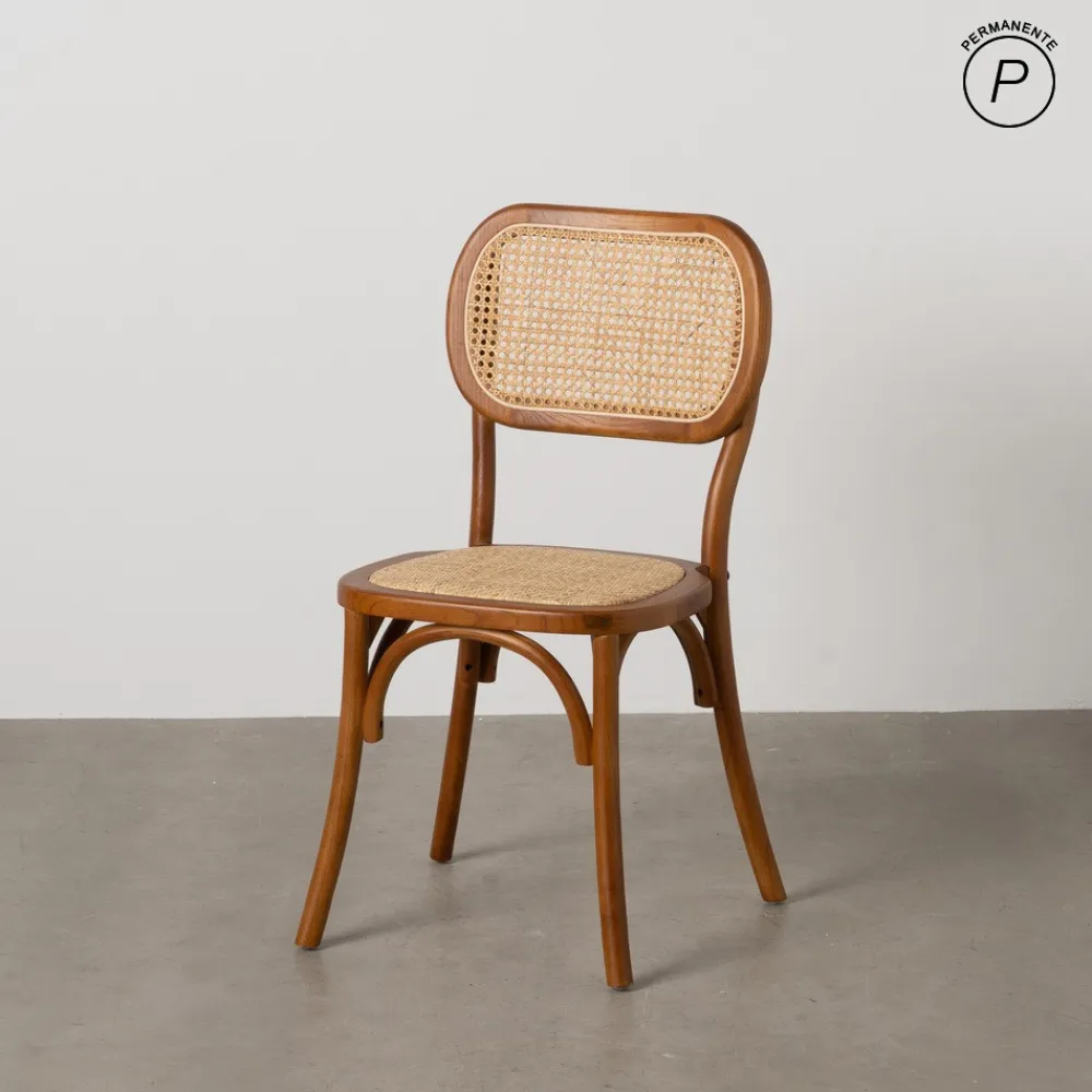 Material: Madera de olmo. Color: Miel. Altura del asiento: 46 cm. Anchura del asiento: 46 cm. Profundidad del asiento: 41 cm. Altura del respaldo: 42 cm. Altura de las patas: 43,5 cm. Distancia entre las patas: 39 cm.