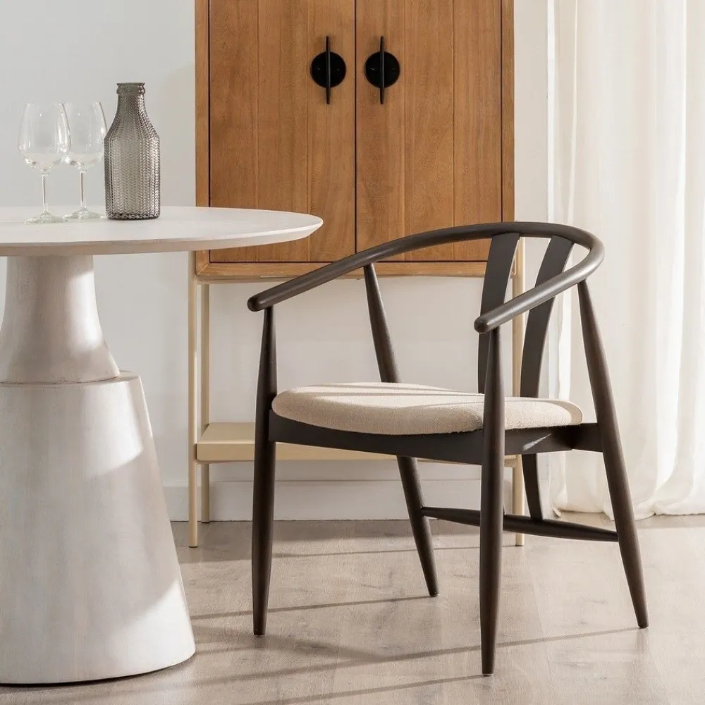 IXIA Sillas De Madera^Silla De Madera Negra Asiento Beige 56,5 X 76 X 57 Cm