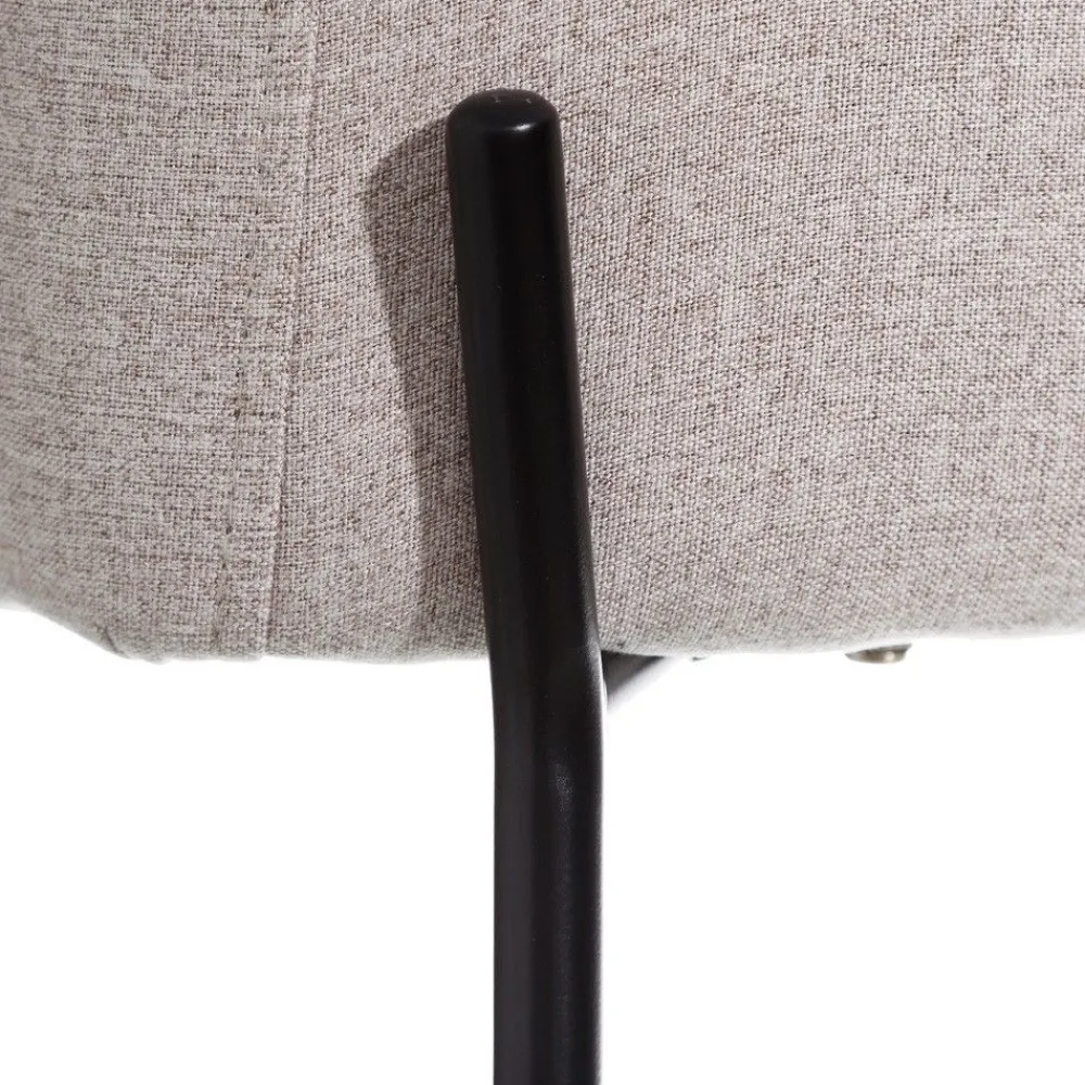 La silla con brazos en color beige es perfecta para cualquier salón moderno, ofreciendo una combinación de comodidad y diseño elegante. Su estructura de hierro y su tapizado de poliéster aseguran durabilidad y estilo.