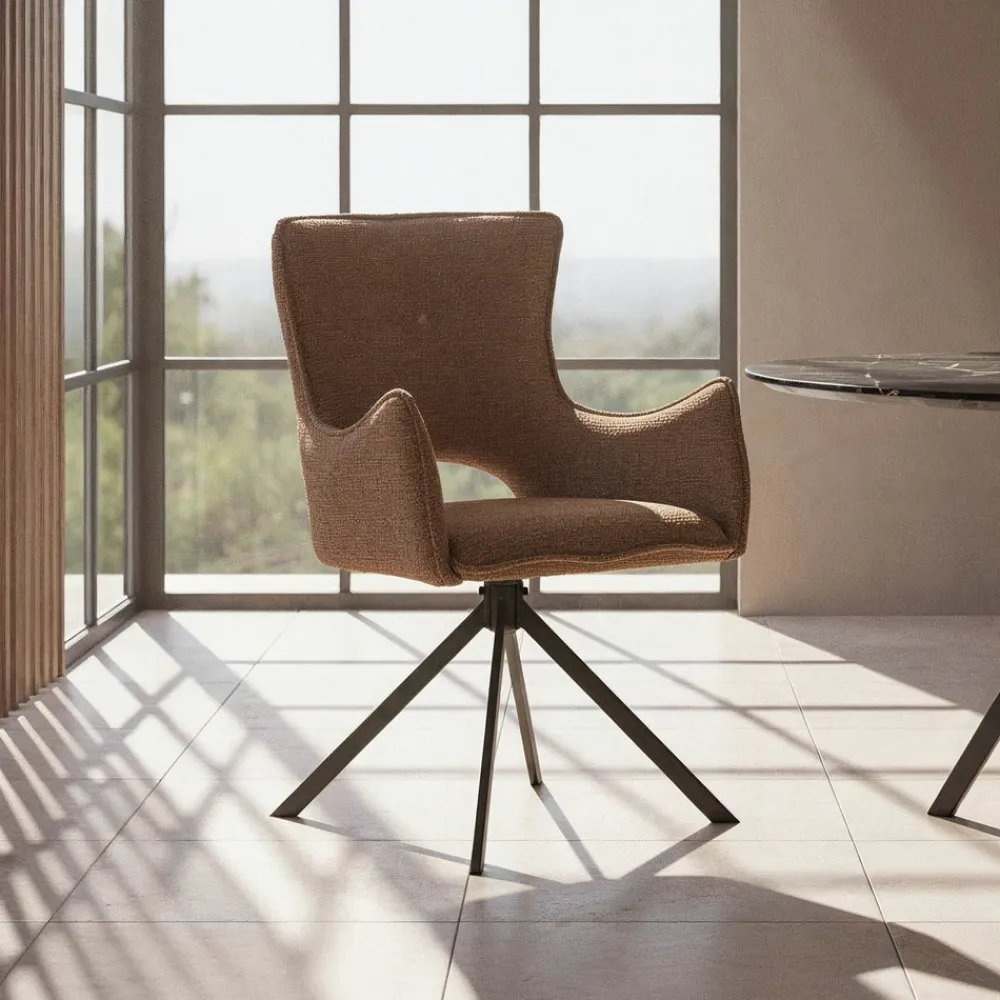 Material: tejido, metal. Altura asiento: 47cm. Ancho asiento: 43cm. Profundidad asiento: 46cm. Altura respaldo: 45cm. Altura reposabrazos: 21cm. No apilable. Cumple la normativa EN16139 (catering).