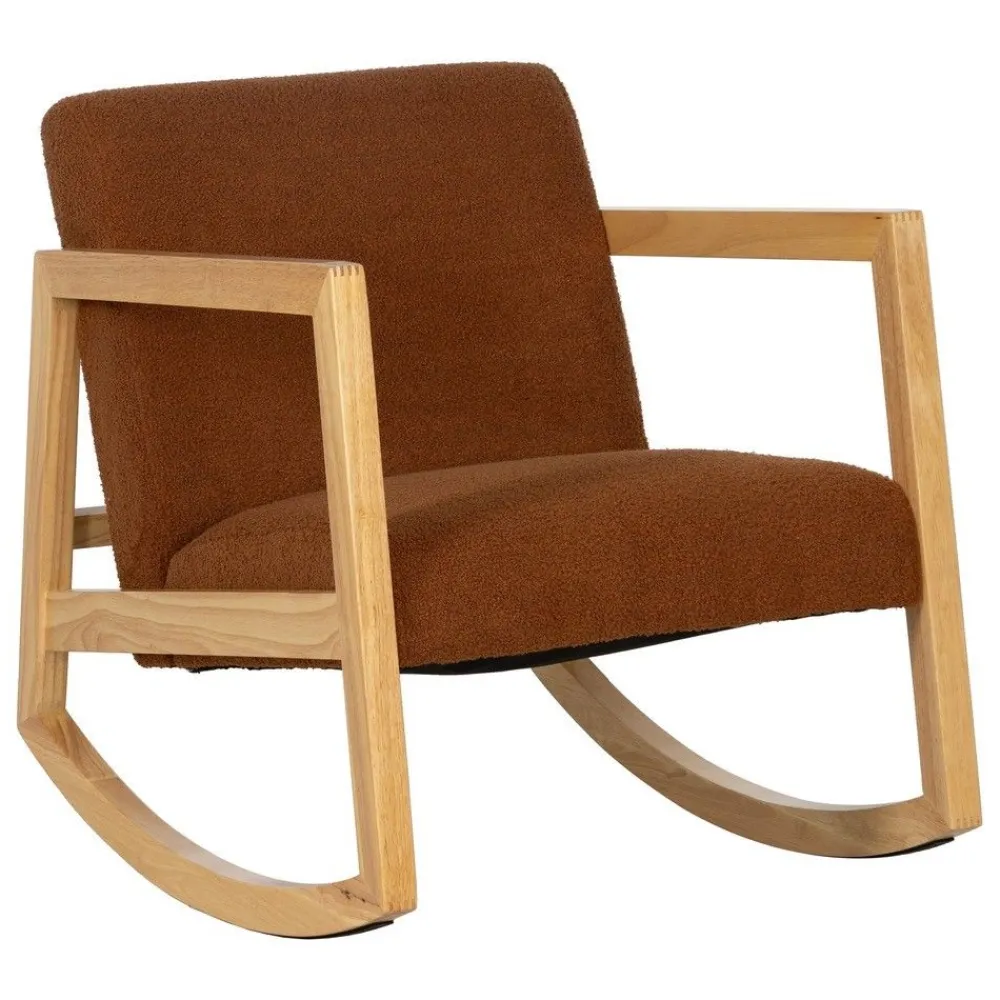 IXIA Sillones^Mecedora De Madera De Caucho Natural Tapizado Marrón 60 X 83 X 72 Cm