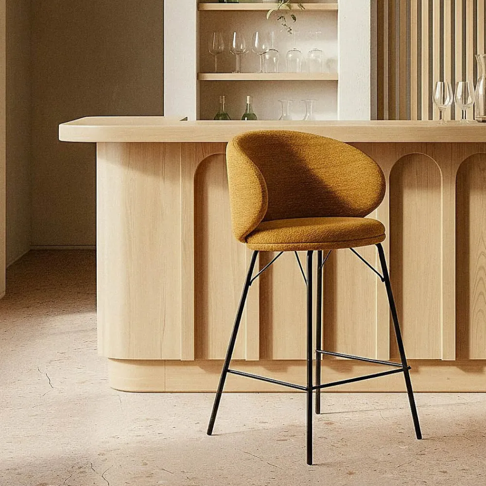 IXIA Taburetes De Cocina^Taburete Medio Bar Tapizado Tavira Mostaza 46,5 X 90 X 46,5 Cm