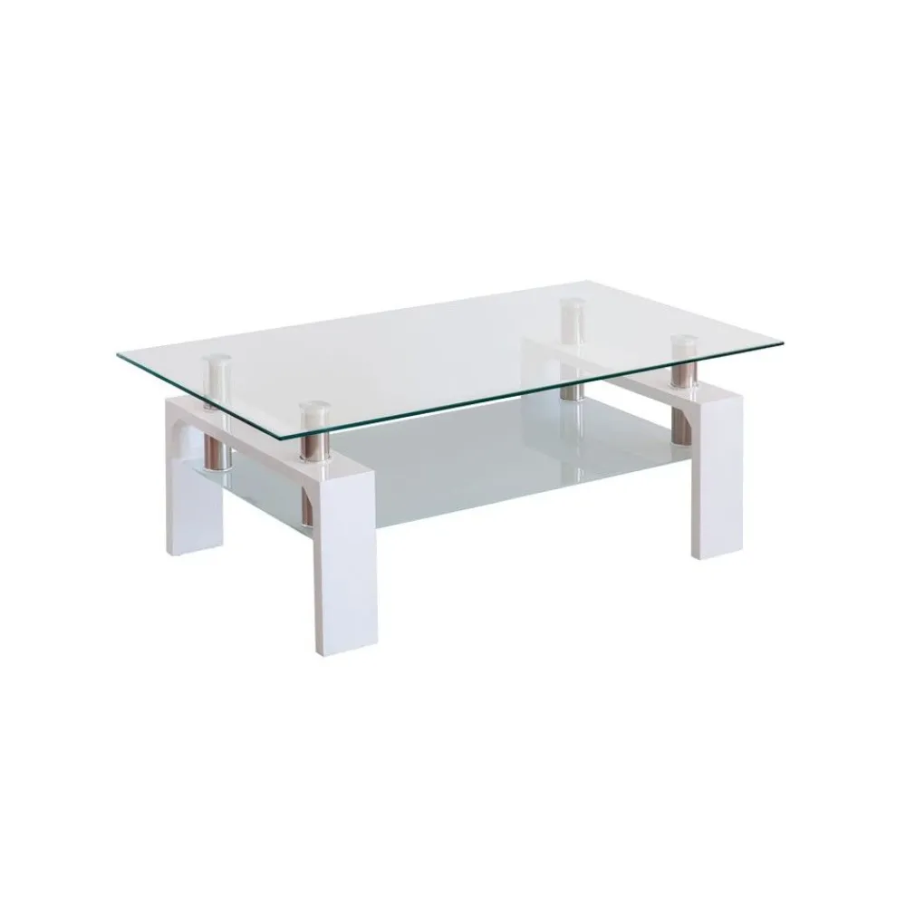 NAKURA Mesas Auxiliares^Mesa Centro Fija Cristal, Patas En Blanco Kendra 100 X 43 X 60 Cm