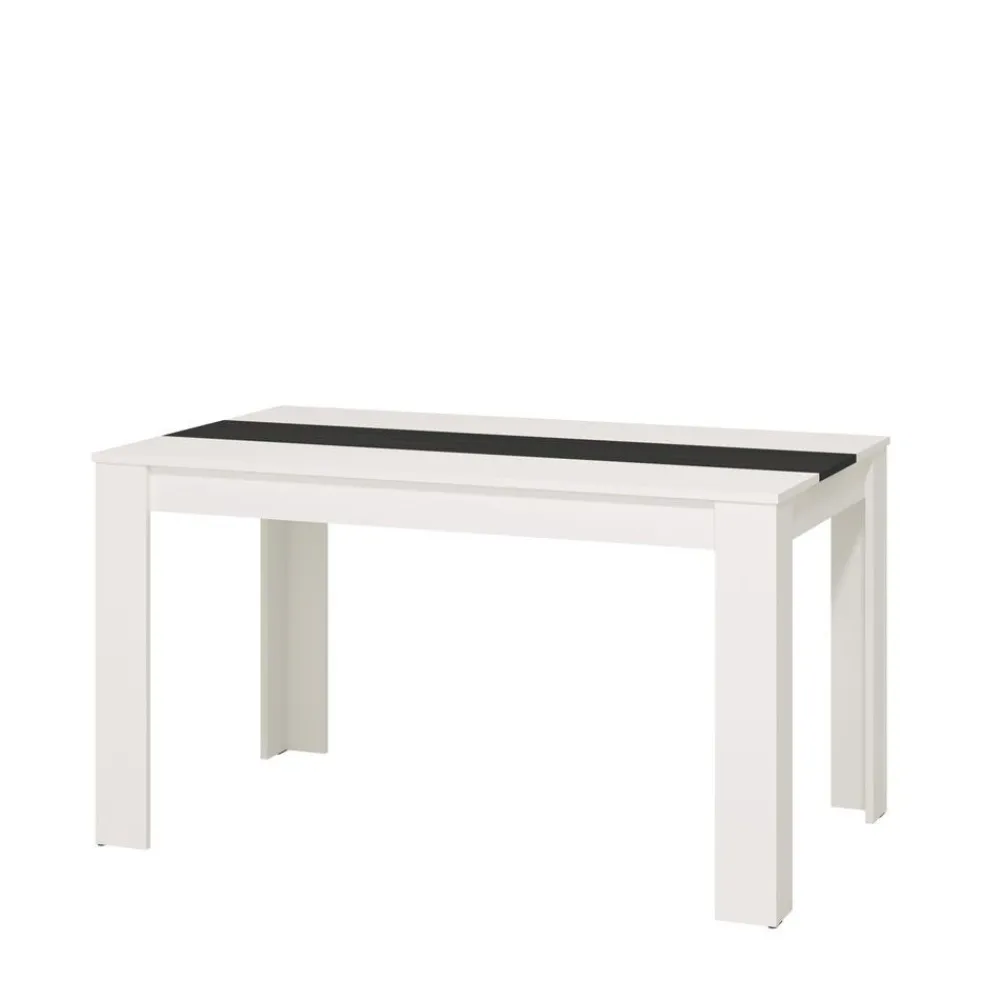 Esta mesa de para salón comedor destaca por su robustez y por su acabado en color Blanco, se trata de una mesa de salón fija con una franja central en color Negro muy decorativa.