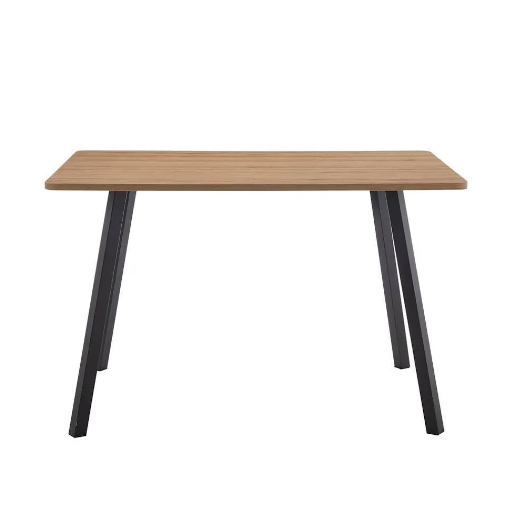 La ofrece una solución práctica y elegante para cualquier hogar. Su diseño minimalista combina una resistente tapa de melamina en acabado roble, que aporta calidez al espacio, con una estructura metálica negra que asegura estabilidad y durabilidad. Esta mesa es ideal para crear ambientes modernos e industriales, perfecta para comedores, cocinas o espacios multifuncionales.