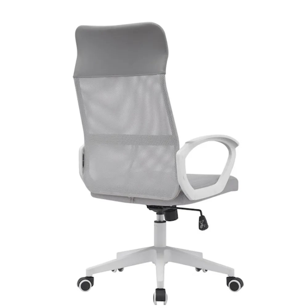 La silla de oficina elevable Carey en gris es perfecta para quienes buscan ergonomía y diseño en su lugar de trabajo. Con un respaldo ergonómico tapizado en PU gris en la zona del reposacabezas y tejido 3D gris en el resto, ofrece confort durante largas horas de uso. Dispone de refuerzo lumbar, estructura de polipropileno blanco, mecanismo hidráulico elevador y sistema de balanceo.