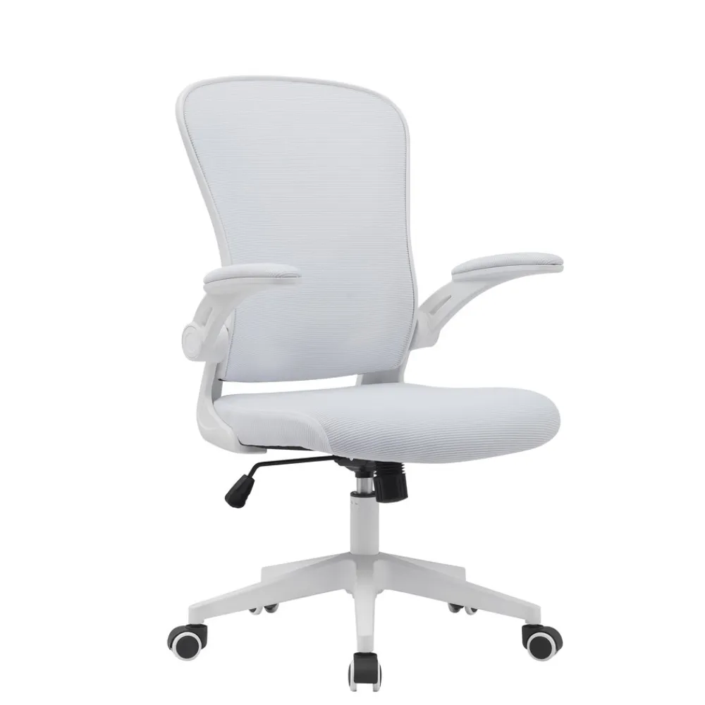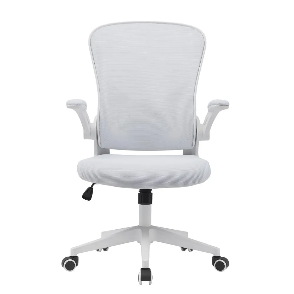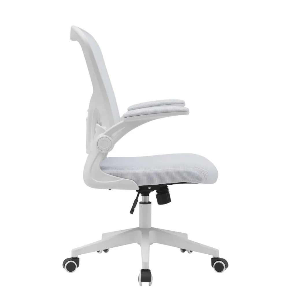 - Brazos abatibles tapizados en tejido 3D blanco