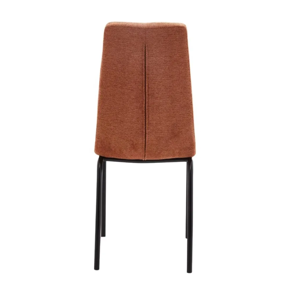Este diseño destaca por su elegancia y líneas sencillas, evocando un estilo y , perfecto para integrarse en una amplia variedad de decoraciones, desde salones y comedores hasta oficinas y salas de espera. La tapicería en tono teja aporta un toque de calidez y sofisticación, convirtiéndola en una pieza atractiva y funcional.