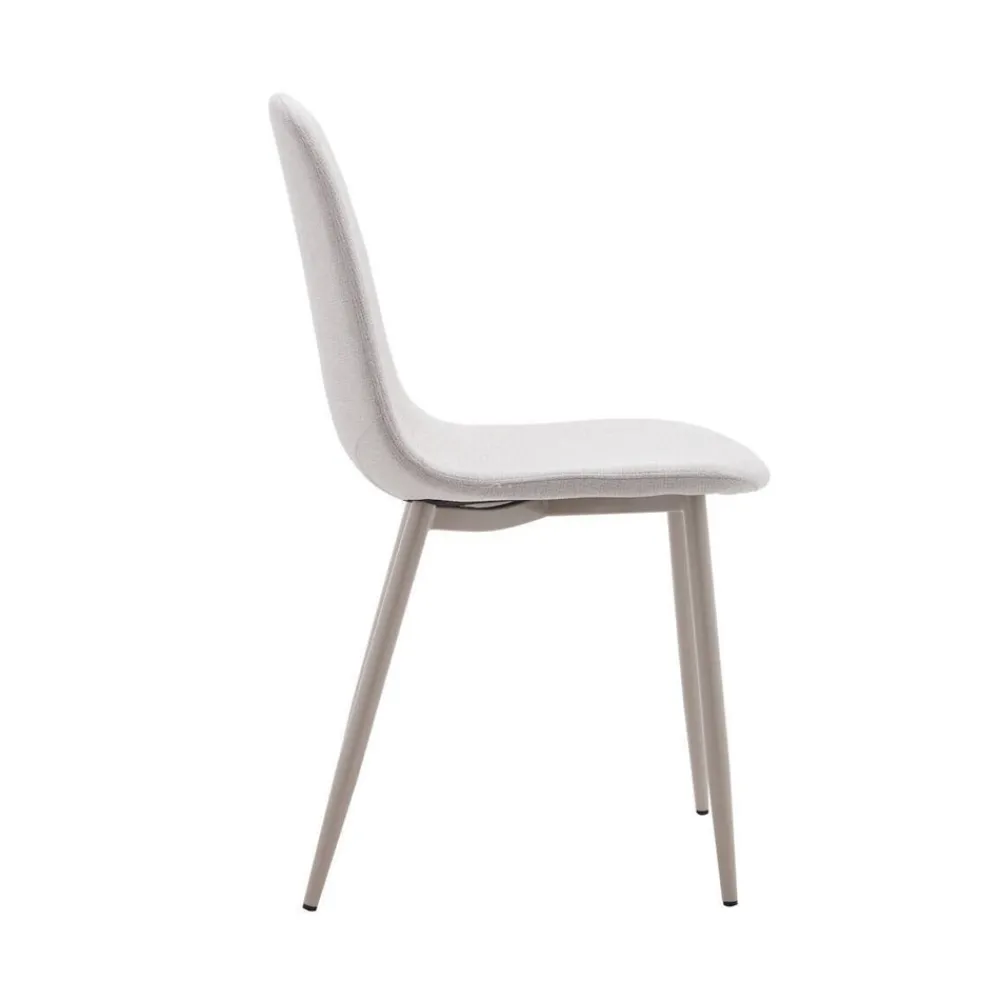 La es ideal para añadir un toque de elegancia a tu hogar. Con su tapizado en tela beige claro Barrel 03 y tratamiento Easy Clean, esta silla es resistente a las manchas, lo que la hace perfecta para un uso diario en el comedor o salón. Sus patas metálicas en color crema ofrecen un contraste sutil y sofisticado, añadiendo un toque de modernidad a cualquier ambiente.
