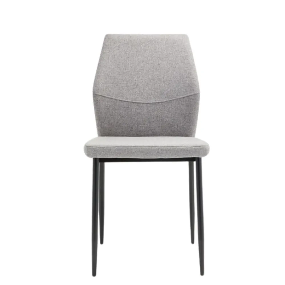 El confort y estilo se unen en esta silla de comedor tapizada en tela Easy Clean tipo lino color gris. El asiento y el respaldo están acolchados, lo que nos aporta una experiencia de sentada muy confortable, siendo unas sillas perfectas para largas sobremesas. Su respaldo es en forma hexagonal, con una costura decorativa en el frente, apostatando un toque de distinción y originalidad a la silla de comedor.