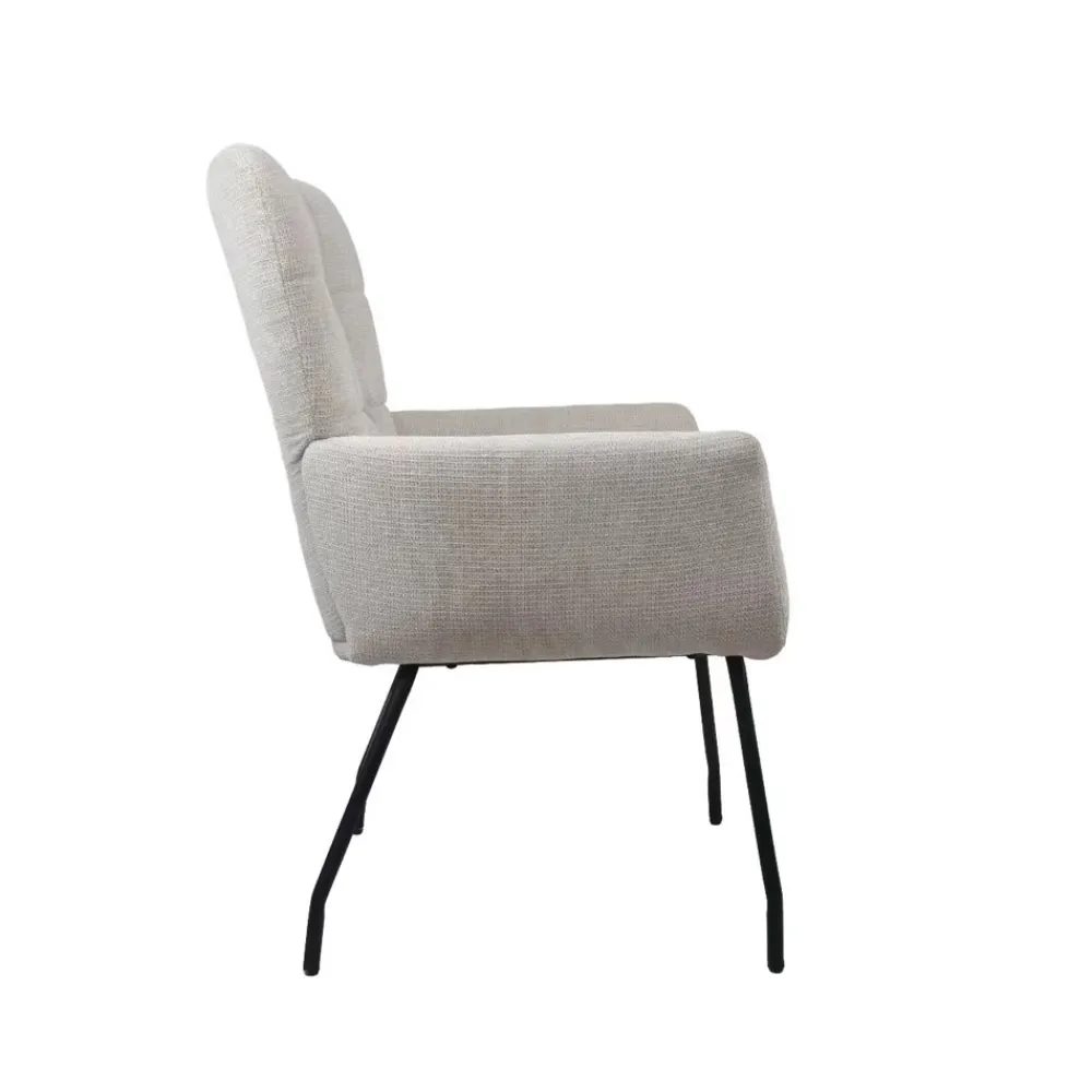La butaca Olenka es una opción perfecta para quienes buscan un asiento cómodo y sofisticado en su hogar. Con un diseño moderno y elegante, esta butaca destaca por su estructura de madera y patas metálicas negras que aportan estabilidad y estilo. El tapizado en color beige, repelente al agua, asegura durabilidad y fácil mantenimiento. Es ideal para el salón, el dormitorio o cualquier rincón de tu casa.