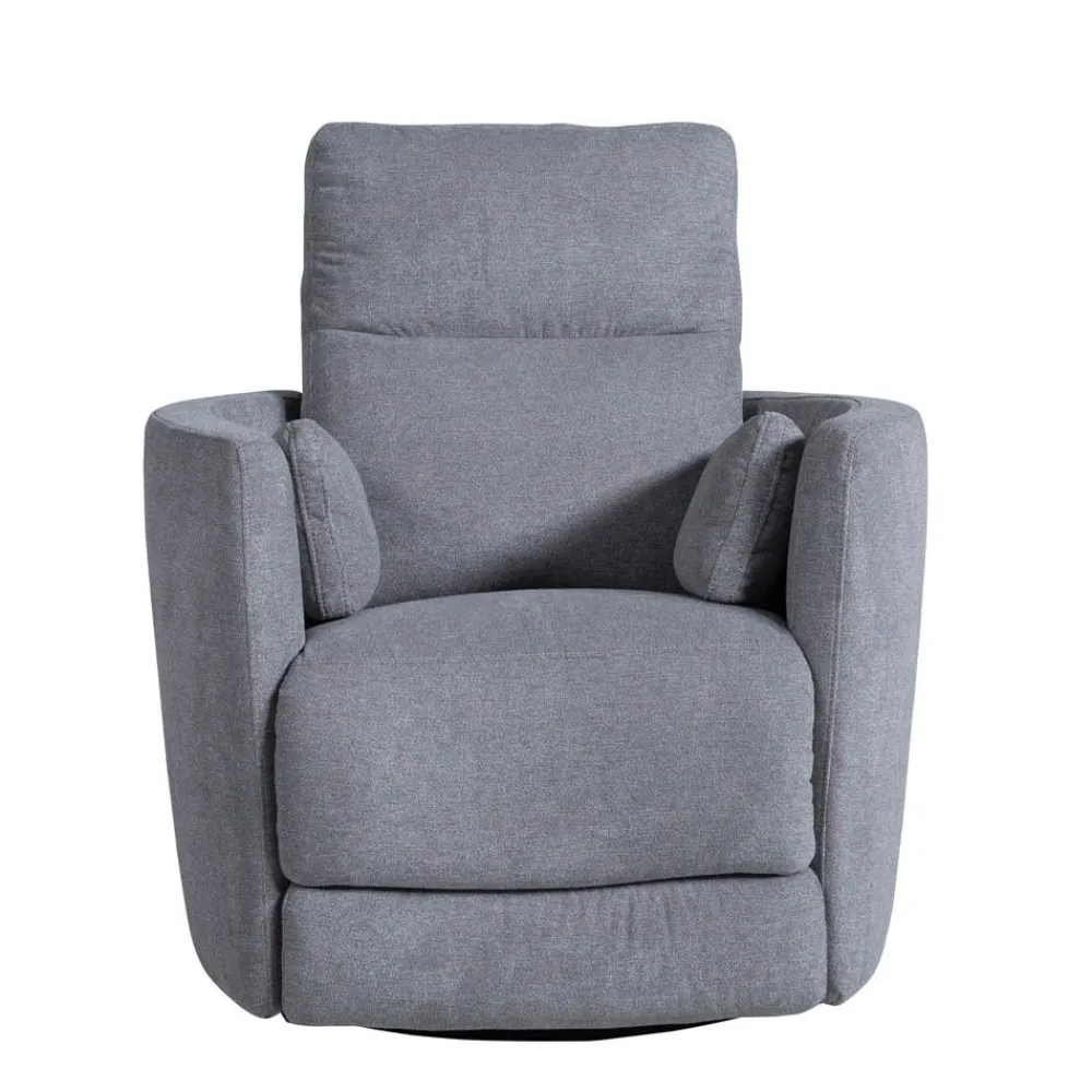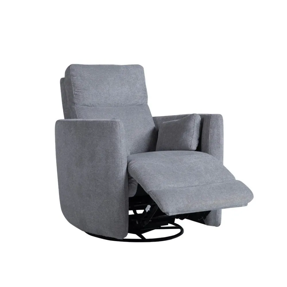 Sillón relax manual, giratorio y con balancín de estructura fabricada en madera tratada, está tapizado en tela de alta calidad color gris. Su proceso de cosido computerizado aportan una garantía de calidad extra.El asiento y respaldo están acolchados con espuma de poliuretano de alta densidad, cubierta de una capa de relleno de fibra y con muelles de acero ubicados, por eso es tan confortable.