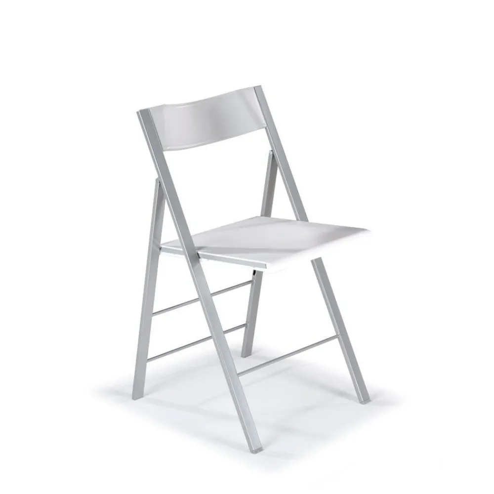 Tanto el respaldo como el asiento están realizados en polipropileno en color blanco mate, las patas son metálicas y están pintadas en color aluminio con pintura epoxi. El sistema de apertura es muy sencillo y las tendrás listas para utilizar en una abrir y cerrar de ojos.
