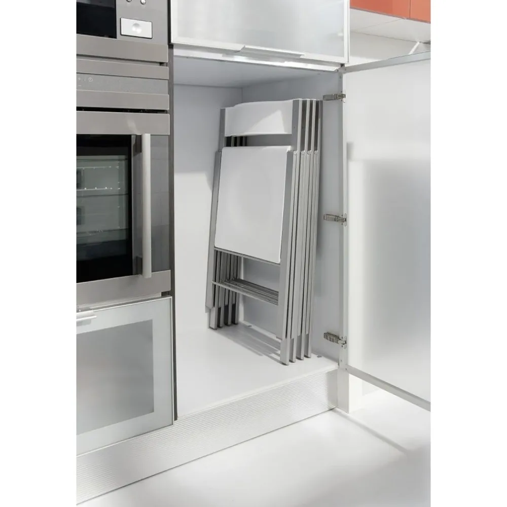 Para solucionar los problemas de espacio en la cocina, la silla plegable Verónica es la solución perfecta. Cuando no se está utilizando se puede guardar en un mueble, despensero, escobero o un trastero.
